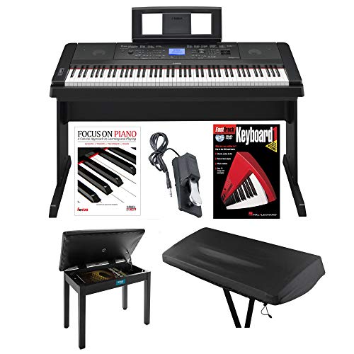 We will talk about more of the features in our next Yamaha digital piano review as we are looking 2 bundle sale versions of the DGX-660 in this article. This package has a bench and dust cover, a sustain pedal for foot operation, and an instructional book and DVD, along with polish cloth provided by Austin Bazaar.