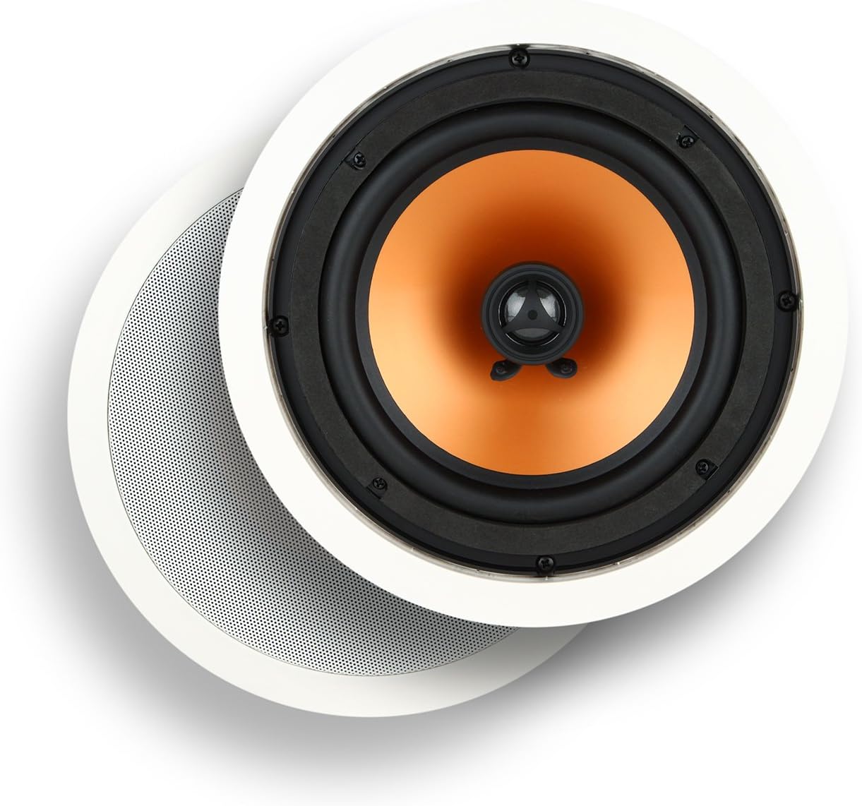 It has a slimline shape and a low profile with zero footprints to take up valuable space. It provides high-definition audio and is constructed from long-lasting premium caliber parts. It's easy to install, and the grilles attach magnetically. You can even paint them!